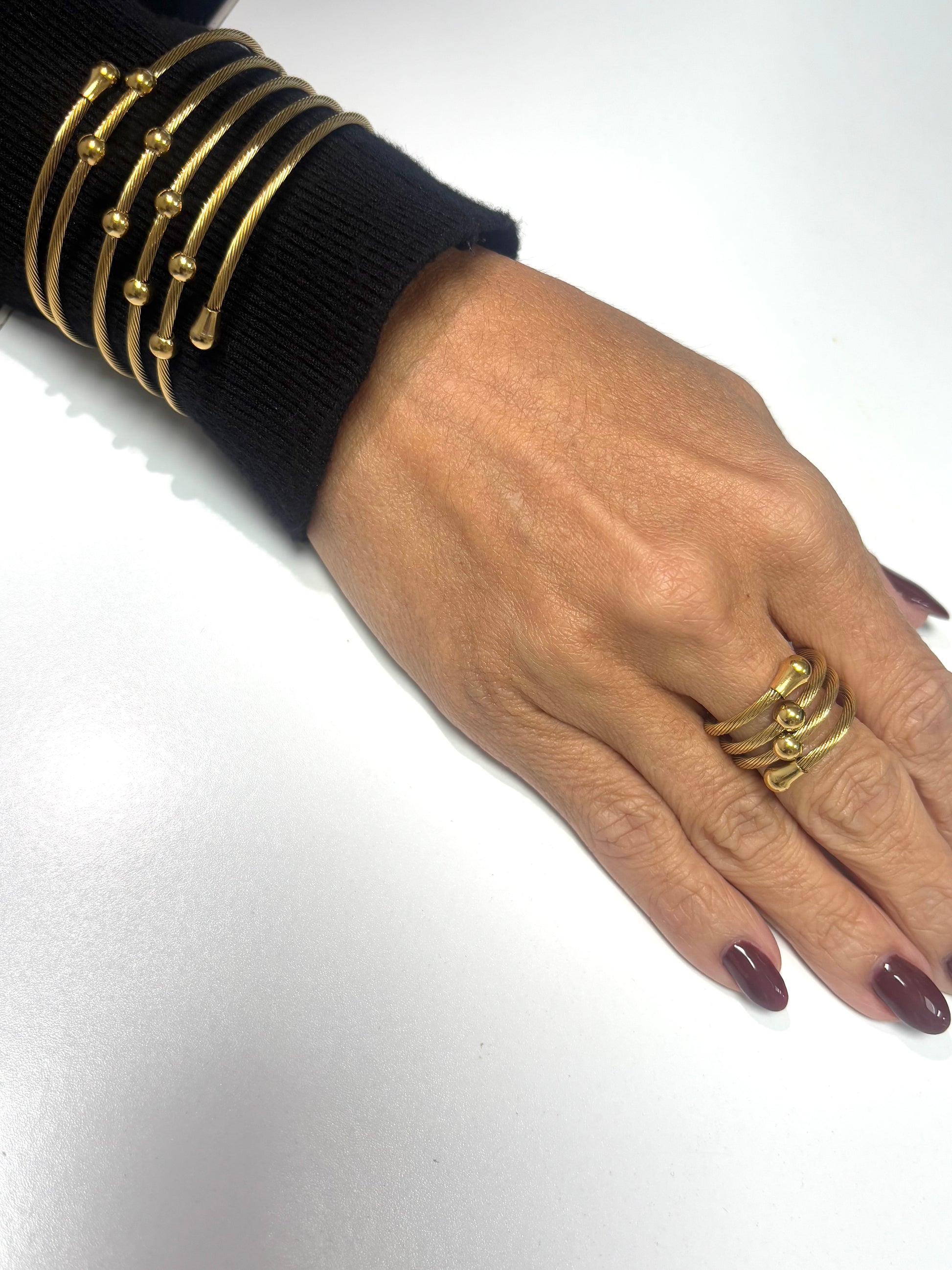 Contemporary layered ring in silver with gold details, perfect for a bold yet refined look.